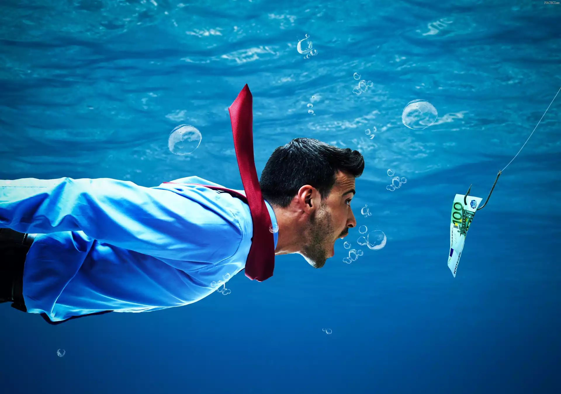 Banknot, Śmieszne, Mężczyzna, Haczyk - faceci.biz