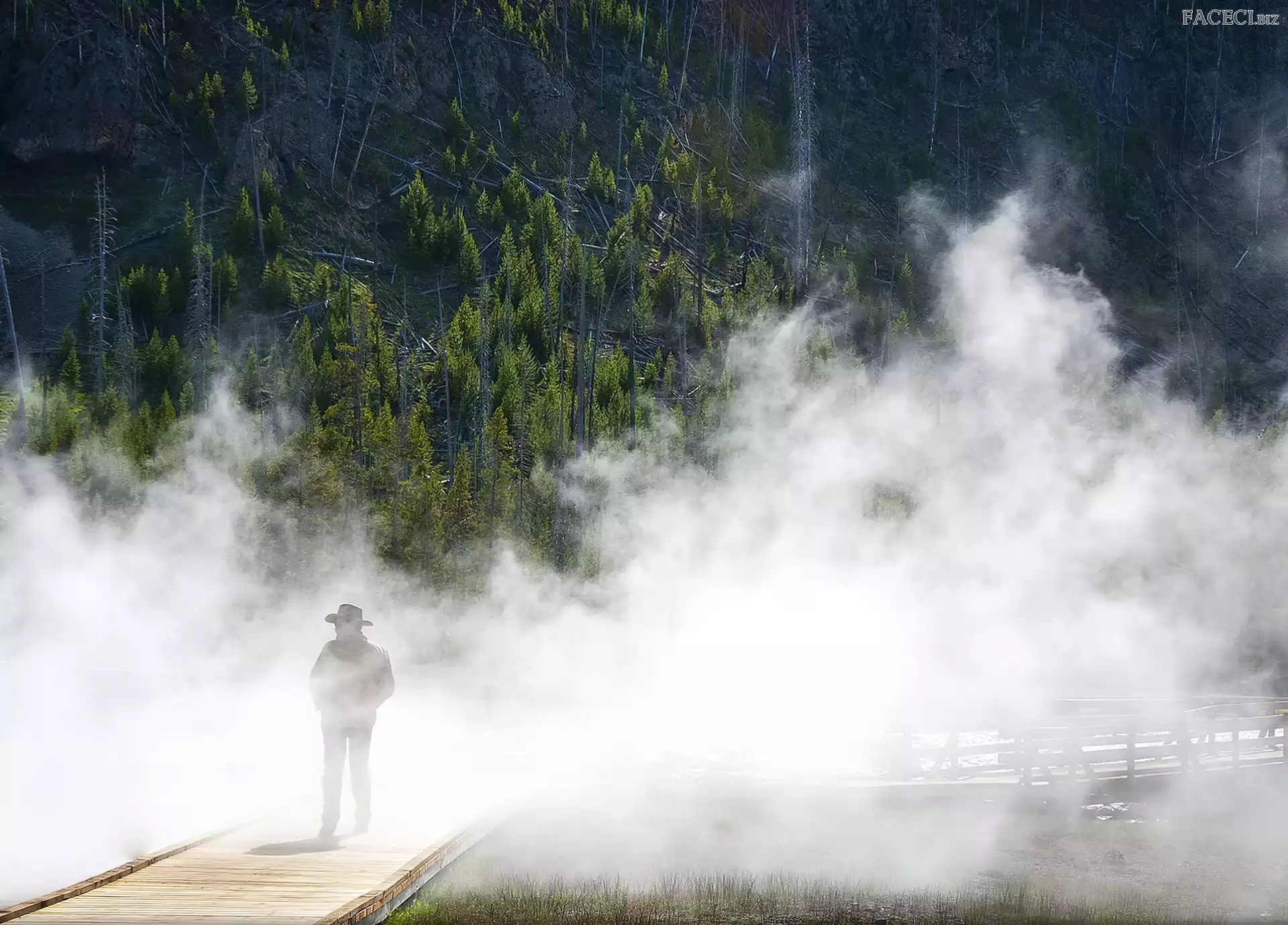 Mgła, Mężczyzna, Las, Mostek - faceci.biz